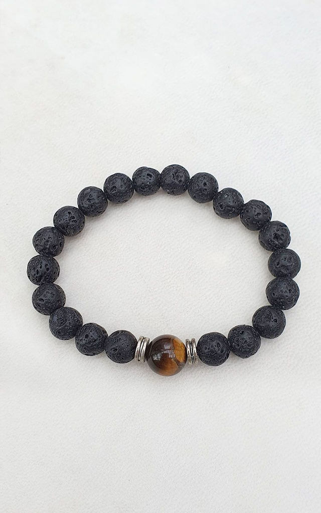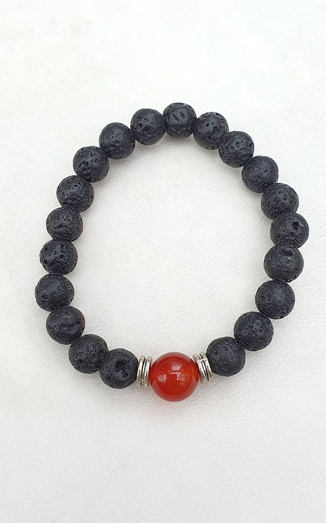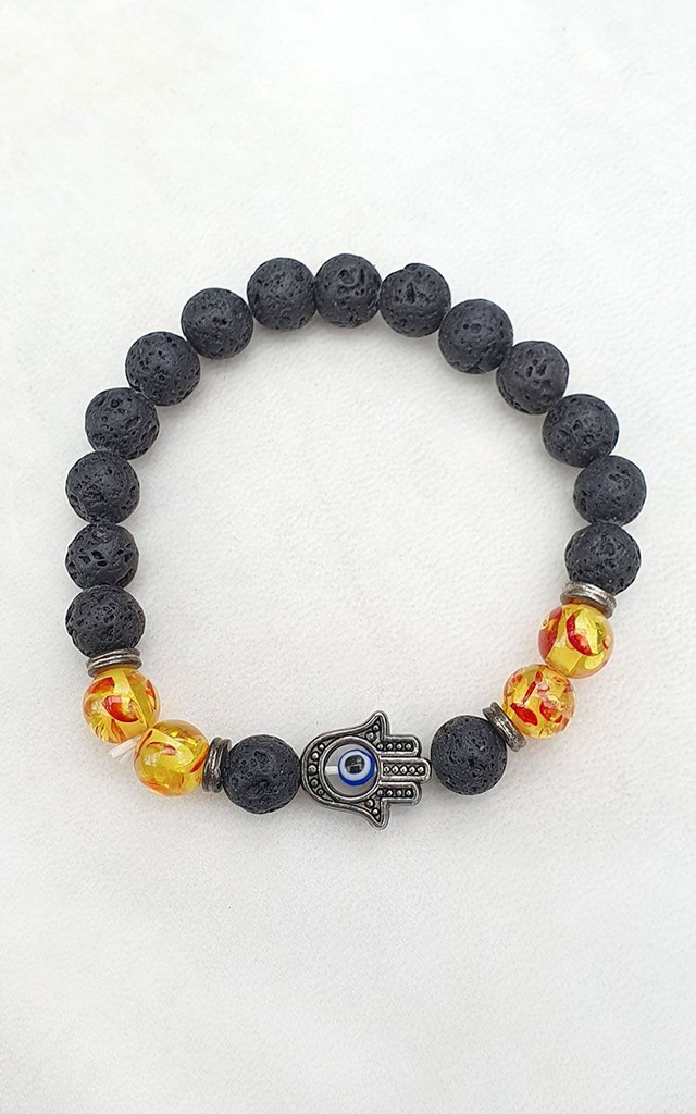 Armband für Erwachsene aus Lavastein in verschiedenen Ausführungen. Mit der Hand Fatimas, Halbedelsteinkugeln oder Glaskugeln, Durchmesser vom Armband ca. 5,5 cm.